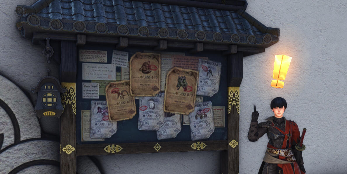The Mikoshi’s Rest questboard offers opportunities for adventure! From slaying monsters to crafting items to gathering rare materials, there is a quest for everyone on the board. In addition to normal quests, there are also regularly scheduled hunts allowing for up to a full party to take down the latest hunt mark!Quests are offered for completion outside of our opening hours, coordinated between the quest giver and the quest taker(s).